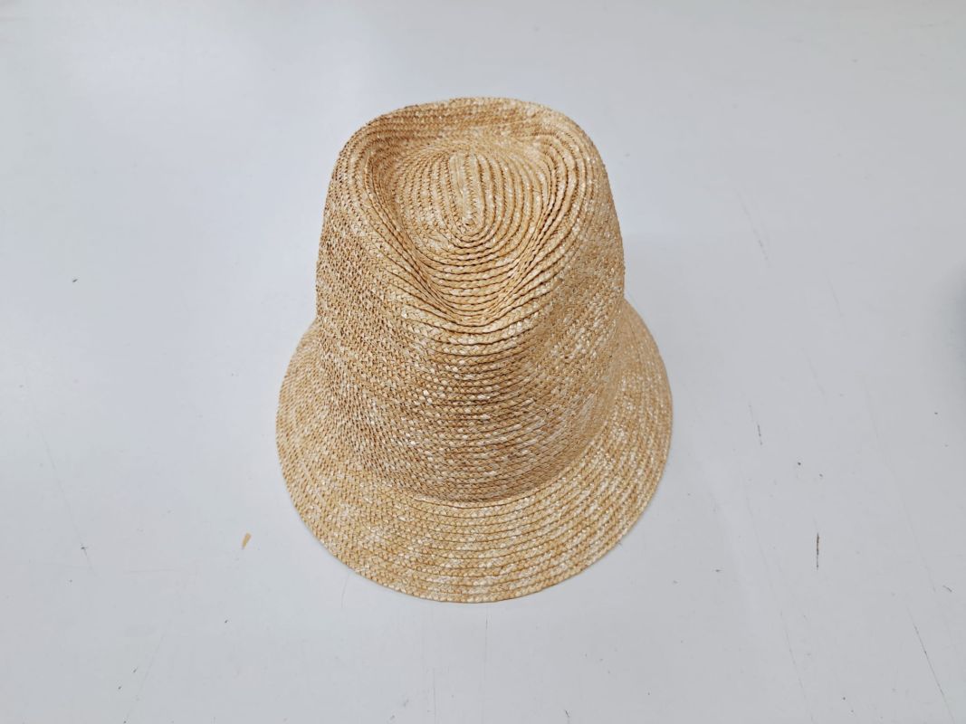 Deze half fabricaat strohoed is gemaakt in Europa. Er zit nog geen binnenband in dus maat is onbekend.